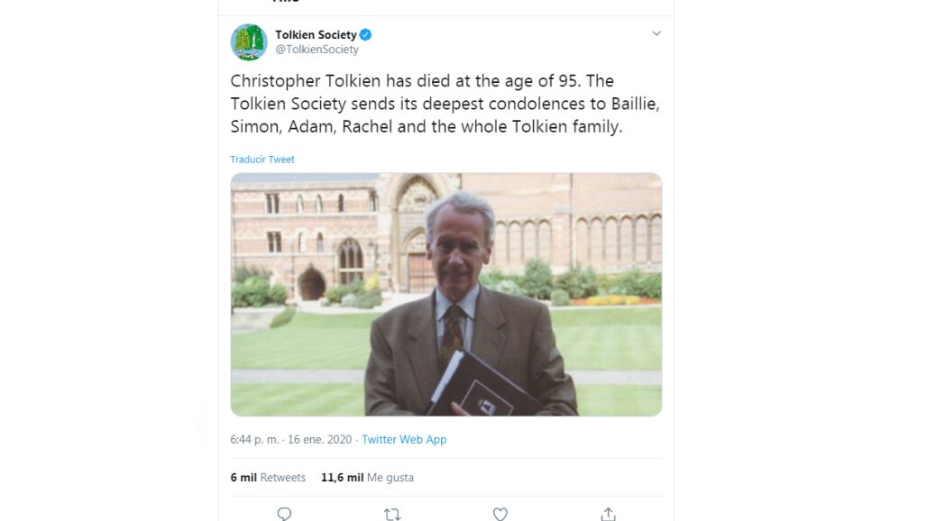 "El compromiso de Christopher con las obras de su padre ha permitido que vieran la luz docenas de publicaciones", subrayó en un comunicado el presidente de la Tolkien Society, Shaun Gunner, que alabó asimismo su trabajo como académico en la Universidad de Oxford, donde dio clases de lengua inglesa entre 1964 y 1975.