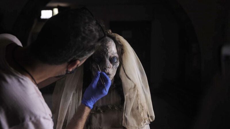 "El proceso de maquillaje es largo, es un proceso de horas más las horas de rodaje. Afortunadamente Elena, la actriz que hizo de espectro tenía una paciencia infinita y un buen rollo constante en el set que era realmente envidiable", nos cuenta su director, Víctor García, sobre lo complicado de traer a la pantalla una caracterización tan compleja. 'La niña de la comunión', producida por Warner Bros. España y Atresmedia Cine, llegó el pasado viernes a los cines de todo el país.