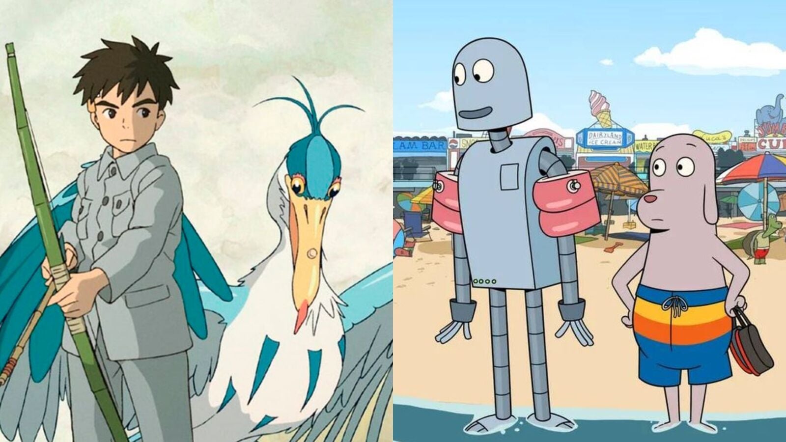 Además de con Robot Dreams, la japonesa El chico la garza competía por el premio a la mejor cinta de animación con la producción estadounidense Spider-Man: Cruzando el Multiverso dirigida por Joaquim Dos Santos, Kemp Powers, Justin Thompson; Nimona, la aventura de fantasía de Netflix dirigida por Nick Bruno y Troy Quane; y Elemental, la cinta de Pixar dirigida por Peter Sohn.