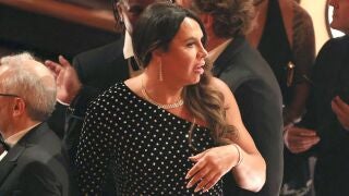 Gascón asistió a la gala sin pasar por la alfombra roja, después de la polémica desatada por antiguos mensajes racistas que publicó en Twitter, lo que la obligó a apartarse de la temporada de premios, aunque también denunció una "campaña de odio" en su contra.