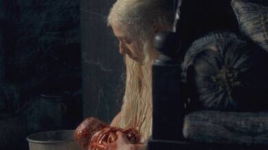 La joven reina tiene un parto prematuro y además da a luz a un bebé deformado y muerto, en una de las escenas más duras de ver de la serie. La que hubiera sido su única hija tras cinco chicos se iba a llamar Visenya.