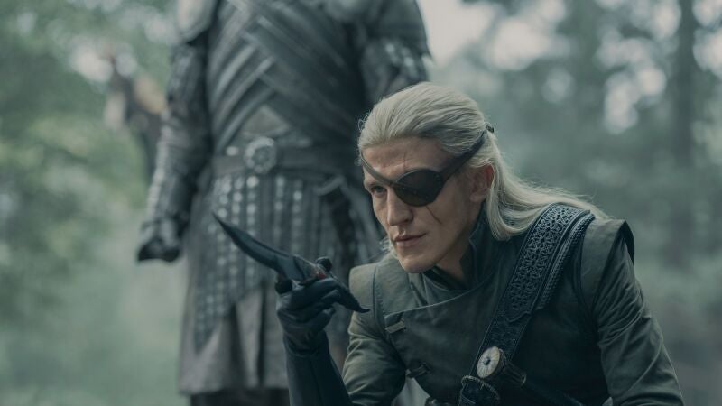 Además de aumentar su legitimidad, la posesión de la daga de acero valyrio otorga a Aemond una ventaja estratégica. Esta daga ya la pudimos ver en la primera temporada, cuando Alicent Hightower la empuña y apuñala en el brazo a Rhaenyra en su intento de arrancarle un ojo a Lucerys, después de que este hiciera lo mismo con Aemond.