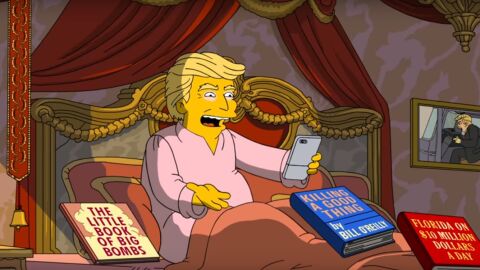 Mientras todo esto ocurre, Donald Trump aparece en la cama rodeado de libros con títulos como 'El pequeño libro de grandes bombas' o 'Matar algo bueno'. Sin pasar desapercibido el cuadro del fondo en el que aparece el presidente conduciendo un camión. Además de todo esto, Trump se niega a leer una nueva ley que su asistente le ofrece.