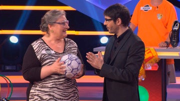 Juanra quiere aprovechar que hay un balón en el plató para que Roser pueda volver a hacer deporte. Nuestro presentador mentaliza a la concursante para que lance el balón. Además de un concurso, '¡Boom!' también es un programa de superación personal.