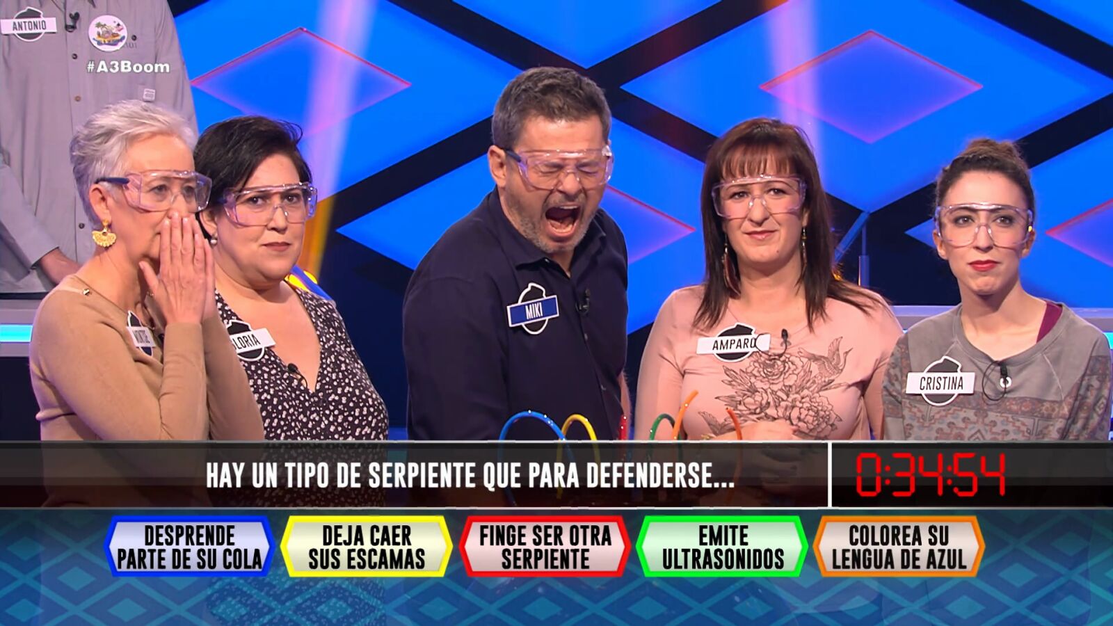 ¡Menudos cinco cerebrines se han juntado! Las actuales campeonas de '¡Boom!' y el presentador de 'Zapeando' se han enfrentado a una complicada pregunta sobre serpientes, pero los concursantes han sido tan astutos como ellas y han podido neutralizar la bomba. Bueno, ¡y con un poquito de suerte!
