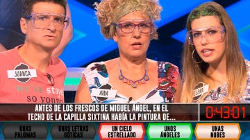 La concursante Nina (del equipo campeón ‘Baker Street Boys’) está siendo la gran protagonista de nuestros últimos programas: si el jueves intentó emparejar a Juanra y a su sobrina Helena, ahora se ha marcado una ronda de 24 aciertos consecutivos en la segunda fase que han supuesto la clasificación de su equipo para la gran final por tercer día consecutivo.