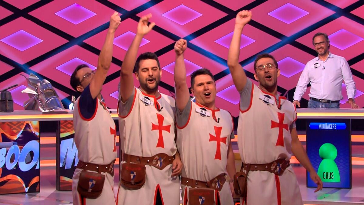 El nuevo equipo de '¡Boom!', los 'Caballeros Templaos' han interpretado el tema ‘Espaldas Mojadas’ de Tam Tam Go, pero para no quedar atrás sus rivales ‘Miriñakers’ también lo han dado todo: Chus ha cantado un tango.