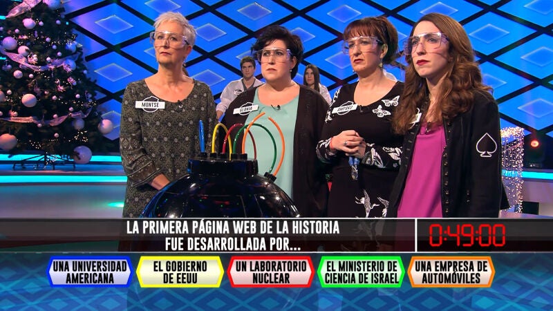 Las ‘Extremis’ siguen siendo las campeonas del programa y no se relajan ni con los festivos intersemanales. Así que en una pregunta sobre los orígenes de las páginas web, las concursantes se han fiado de su compañera Cristina que ha tenido una corazonada sobre la respuesta correcta. ¡Y así ha sido! ¡Bomba neutralizada!
