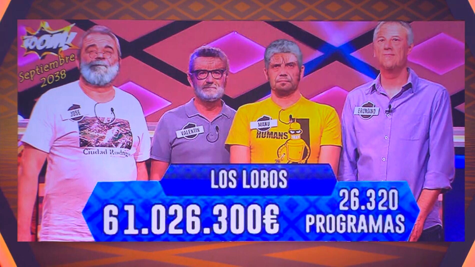 Un espectador ha mostrado cómo será el futuro de ¡Boom! y de 'Los Lobos' en el 2038. Juanra Bonet enseña esa imagen que ha mandado Jose Luis Posadilla. ¿Cómo veis el programa dentro de unos años?