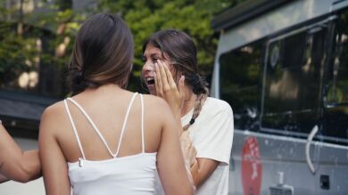 Joaquín coge el cubo para echarle agua a Daniela, cuando la joven sale corriendo y se golpea con el espejo retrovisor con el ojo, “se lo ha comido entero” dice Joaquín mientras no puede parar de reírse ante el accidente de su hija.