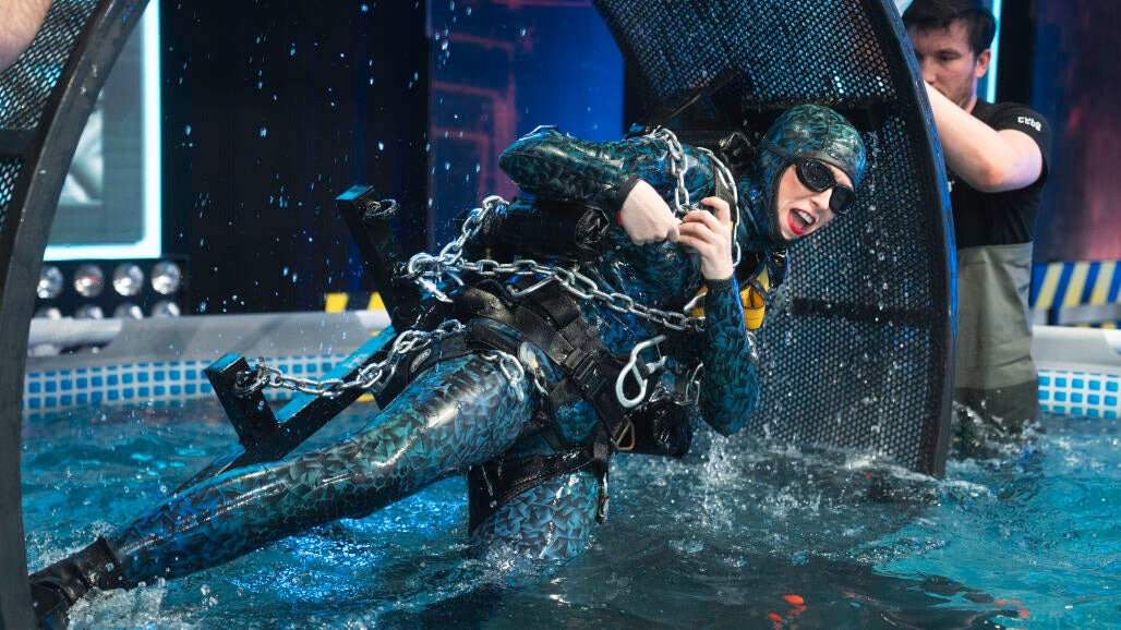 La humorista se ha enfrentado a un complicado desafío de escapismo con agua en el que ha tenido que intentar soltarse de unas cadenas dentro de una piscina.