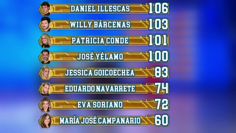 José Yélamo ha bajado al cuarto puesto y le sigue Jessica Goicoechea. Eduardo Navarrete ha escalado dos posiciones tras ganar la gala.