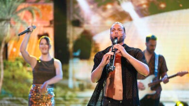El diseñador ha conocido el saxofón electrónico, con el que ha tenido que acompañar a la banda de música en la segunda semifinal de El desafío.