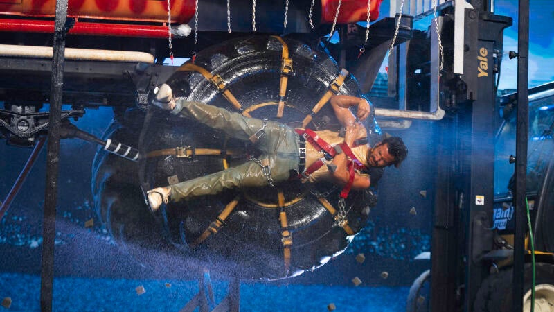 Con una espectacular puesta en escena, el reto al que se ha enfrentado Willy ha consistido en deshacerse de los candados que le ataban a una rueda gigante de un Monster Truck.