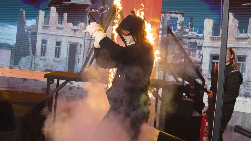 La concursante ha superado el desafío al recorrer 15 metros envuelta en llamas.