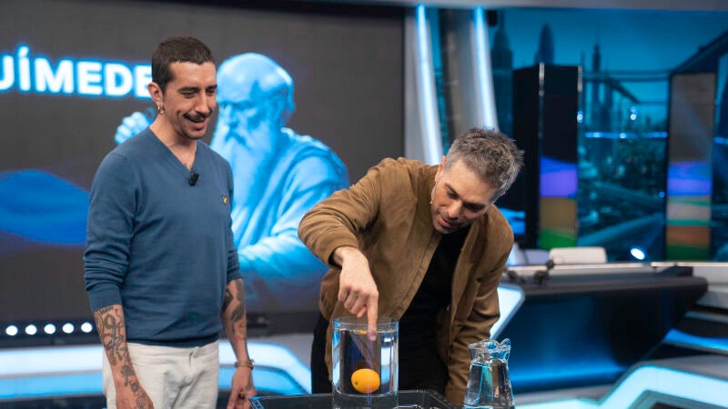 Marron aprovechó la visita de Dani Martínez para proponer uno de esos experimentos sencillos que cualquiera puede intentar en casa. Para este truco científico solo necesitas un recipiente lleno de agua casi hasta el borde… y una mandarina.