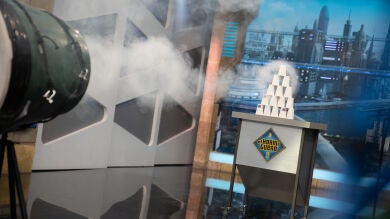 Después de explicar lo que es un vórtice, el equipo ha procedido a dar inicio a un efecto absolutamente impresionante en el que un aro de humo ha derribado una torre de vasos. ¡Ver para creer!