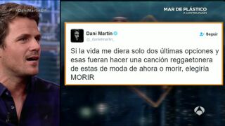 Dani Martín nos sorprendió hace unos días con un tuit en el que el cantante reconocía que, antes de hacer una canción 'reggateonera', él preferiría morir. Pues bien, nuestro invitado ha tenido la oportunidad de explicarse, y zanjar la polémica que ha rodeado a este "pensamiento en alto", como él mismo lo ha llamado.