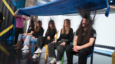 Marron pone a prueba el pelo del equipo de ciencia con "el trenecito de la electricidad estática"