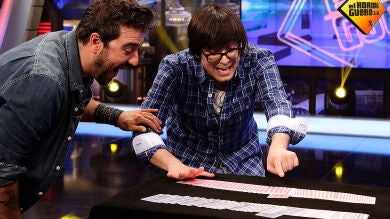 Luis Piedrahita sorprende a Antonio Orozco con un truco de magia de cerca que ha calificado de como 'Cartas Mellizas' y para saber si estás son así hay que hacerles tres test 'dedificación', 'inversación' y 'asomamiento 'ya que son dos barajas de diferente color pero iguales. En la primera prueba ha conseguido que Pablo y Antonio cortaran la baraja por el mismo número y boquiabiertos nos ha dejado con el resto del test.