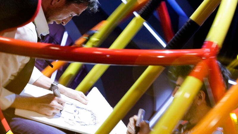 El yoga da equilibrio, amplía la mente... por ello, Pablo Motos le ha traído a Miguel Ángel Muñoz el giroscopio, un aparato traído de las profundidades del infierno con el que tenían que dibujarse el uno al otro mientras giraban sin parar. ¡Qué mareo!