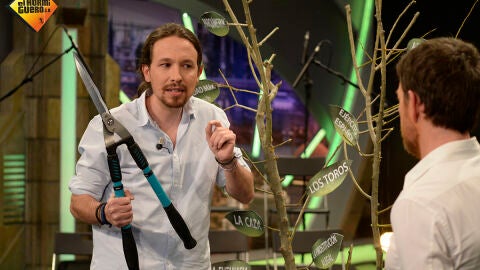La última vez que Pablo Iglesias visitó el plató de 'El Hormiguero 3.0', Pablo Motos le propuso jugar a podar el árbol de España, con tan mala suerte de que el tiempo del programa no se lo permitió. Por ello, esta vez el líder de Podemos ha podido terminar lo que empezó, y ha dicho qué cosas eliminaría de nuestro país.