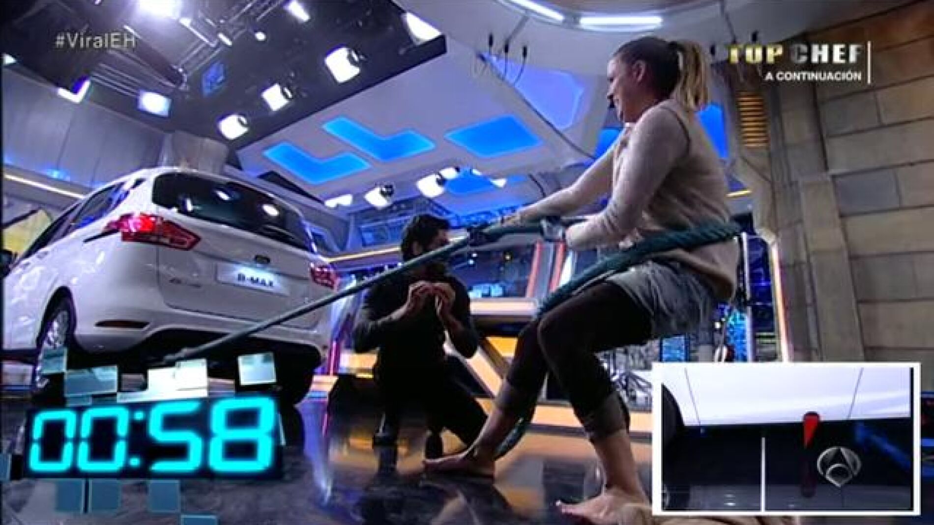Pablo Motos lleva una semana anunciandolo y hoy finalmente ha llegado el día donde una persona del público se ha llevado un coche a casa. La suerte ha que querido que dos chicas, Inés y Teresa pelearan en duro pulso para ver cuál de las dos ganaría el preciado premio. Ambas han tenido que tirar del extremo de una cuerda atada al coche. Teresa, muy alentada por Miguel Ángel Muñoz ha empezado con ventaja y tras dos minutos se ha impuesto a Inés, apoyada por Dafne Fernández y se ha llevado el coche.