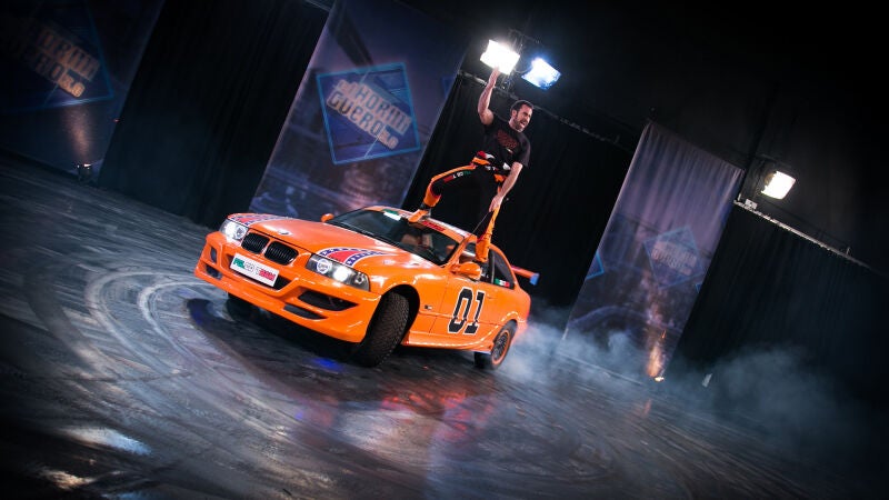 Esta noche comenzará haciendo demostraciones de conducción extrema realizando varios trompos mientras sale por la ventana y se pone de pie encima del coche, lo más peligroso es que durante el trompo el coche pueda frenar y por la inercia se pueda caer. Además dice que como han pasado las Navidades ha engordado un poco y le costará salir por la ventana.