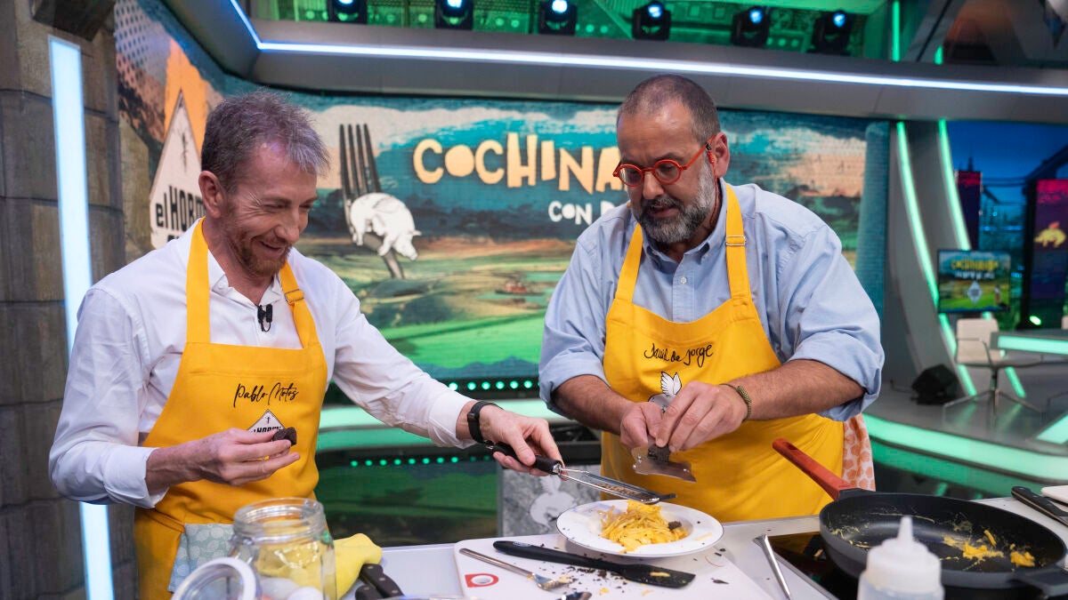 David de Jorge ha vuelto al programa para cocinar con Pablo Motos y Sonsoles Ónega. En esta ocasión, el colaborador ha querido enseñar a preparar a los presentadores un revuelto de trufa negra con patata. "¡Qué maravilla!", ha dicho Sonsoles Ónega nada más oler el producto.