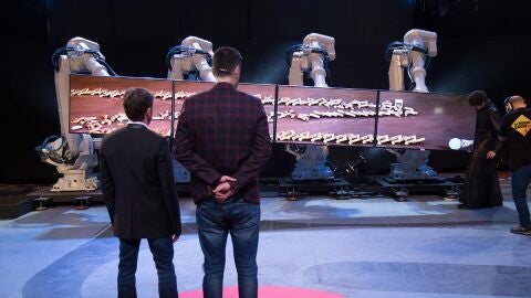 El Hombre de Negro ha juntado la tecnología más avanzada del futuro con las tradiciones del pasado, para dejar a Melendi con la boca abierta. Para ello, ha venido acompañado de un robot muy bailongo que se ha lanzado a la pista de baile con algunos de los mejores temas que Melendi nos ha dejado para la posteridad.