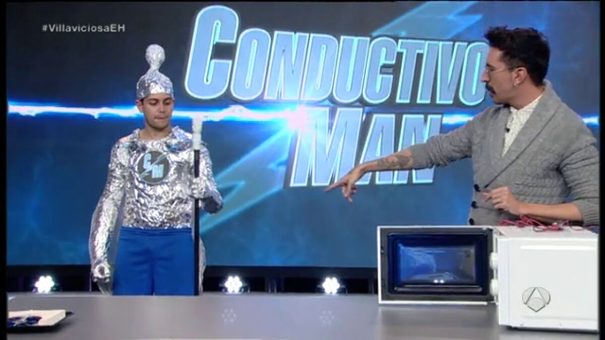 Marron ha venido acompañado de un invitado muy, muy especial. Se trata, ni más ni menos, que de 'Conductivo Man', el primer humano capaz de transportar electricidad a través de su cuerpo, como si de un enchufe se tratara.