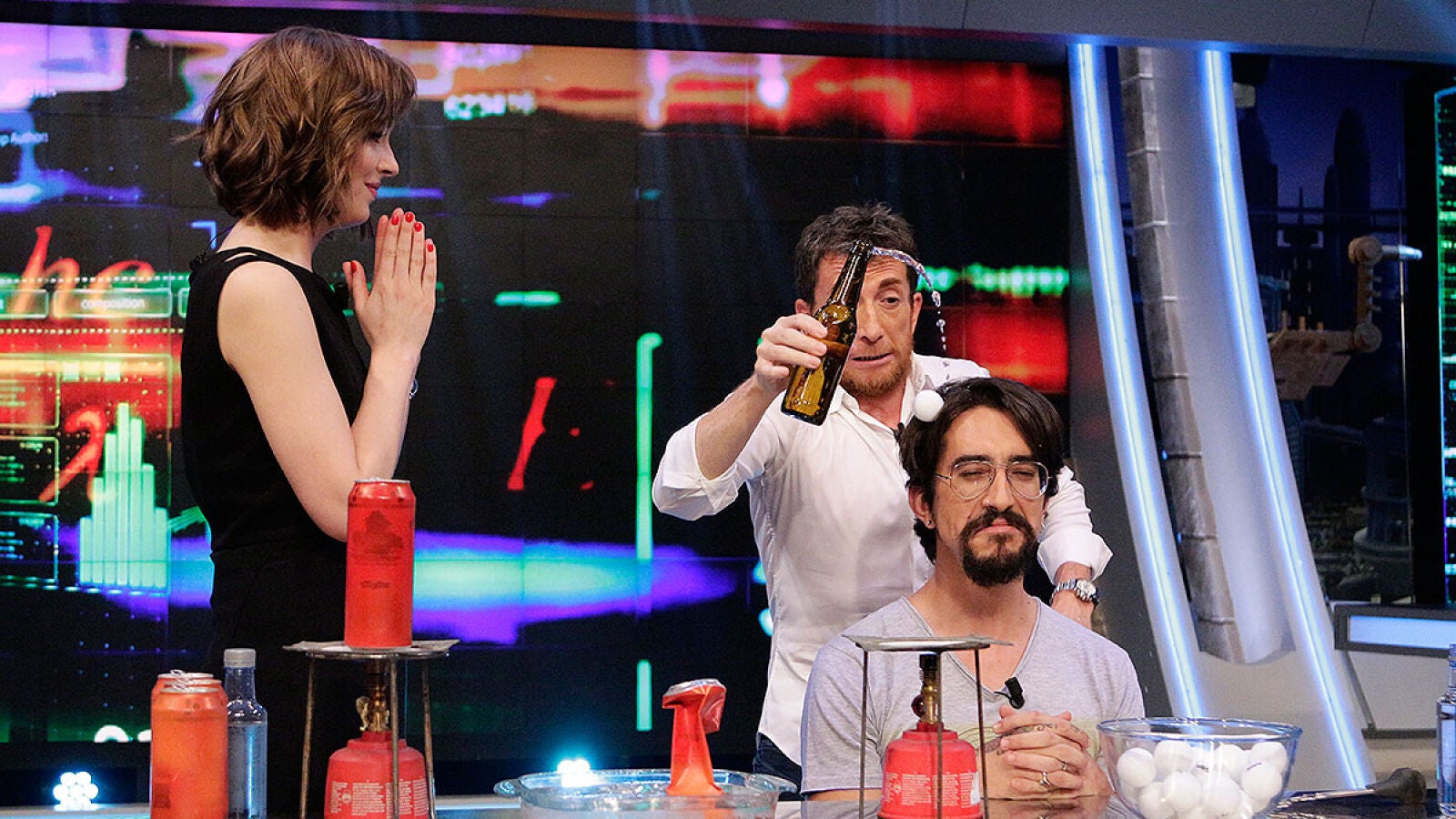 Con envases de cerveza Marron ha realizado varios experimentos, como una implosión (explosión hacia adentro) tras calentar una lata con agua caliente y meterla después en agua fría. A continuación ha utilizado una pelota de pingpong como tapón de botella, jugando con la tensión superficial entre la pelota y el cuello de la botella y por último han llamado al genio de la botella.