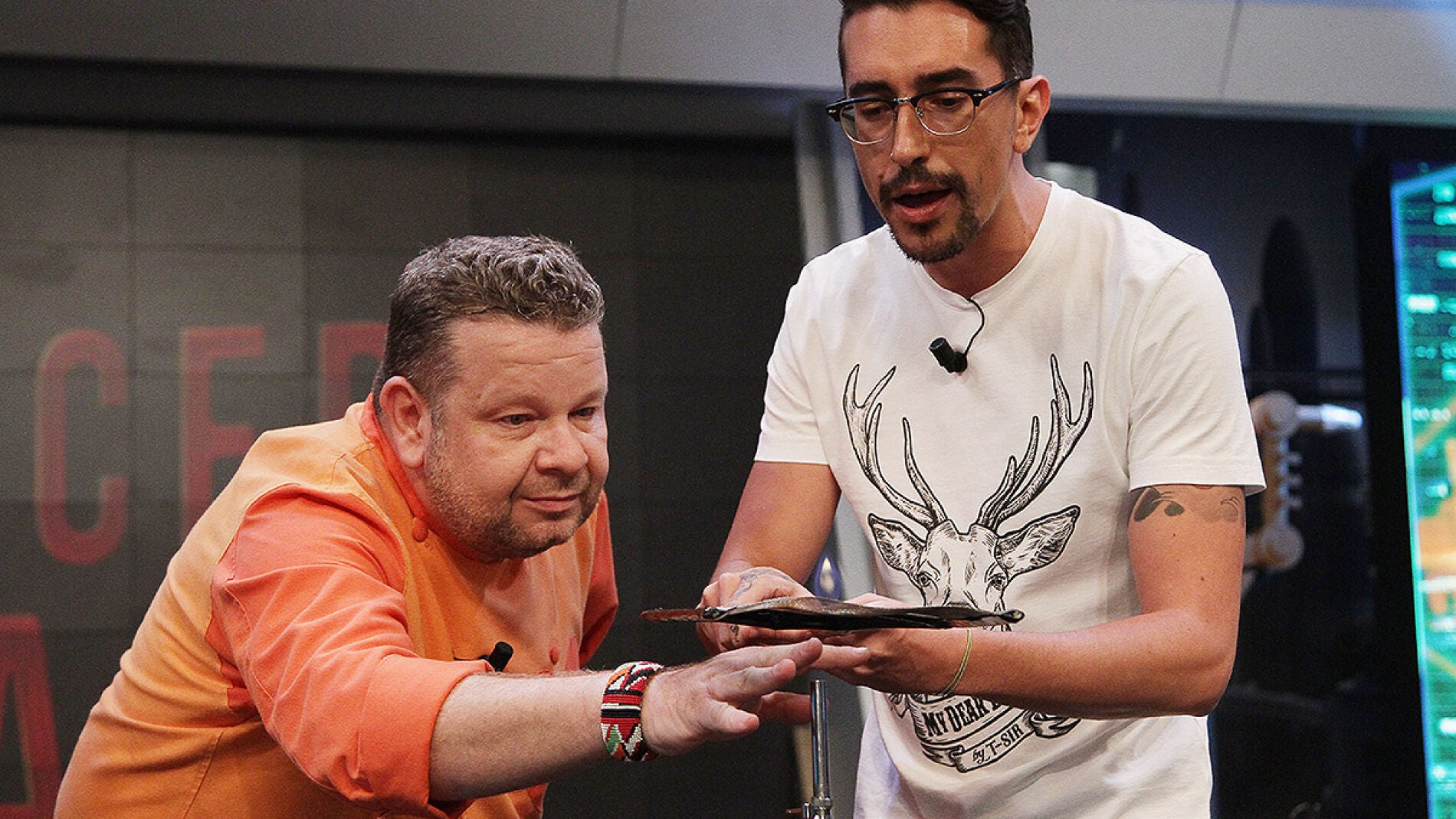 Marron ha sorprendido al invitado de la noche, Alberto Chicote con tres curiosos experimentos, el sándwich de fuego, el Synsepalum Dulcificum y cómo conseguir que una tarta no se reseque cuando se corta.