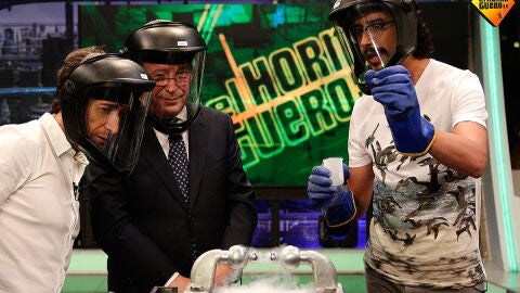Marron nos enseña un gas que pocas veces la vemos en otro estado que no sea el gaseoso. Hablamos del oxígeno en estado líquido, en este estado el oxígeno adquiere un color azul y además es fuertemente paramagnético como nos demuestra Marron en el experimento.