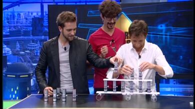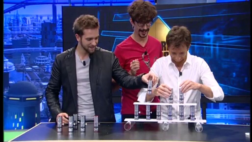 Marron ha querido enseñar a Pablo Alborán y Pablo Motos como se realiza la sincronización espontánea y la tensión extrema que aguantan los globos. ¿Conseguirán los globos soportar el peso de Marron en El Hormiguero?