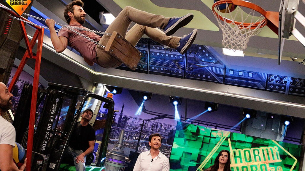 Una semana más Santi acude al plató de El Hormiguero 3.0 para lanzar un nuevo reto a Pablo Motos, en esta ocasión han tenido que encestar una canasta desde un columpio con los pies. Santi Millán ha sido claramente el ganador con ocho canastas frente a las dos que ha conseguido Pablo Motos.