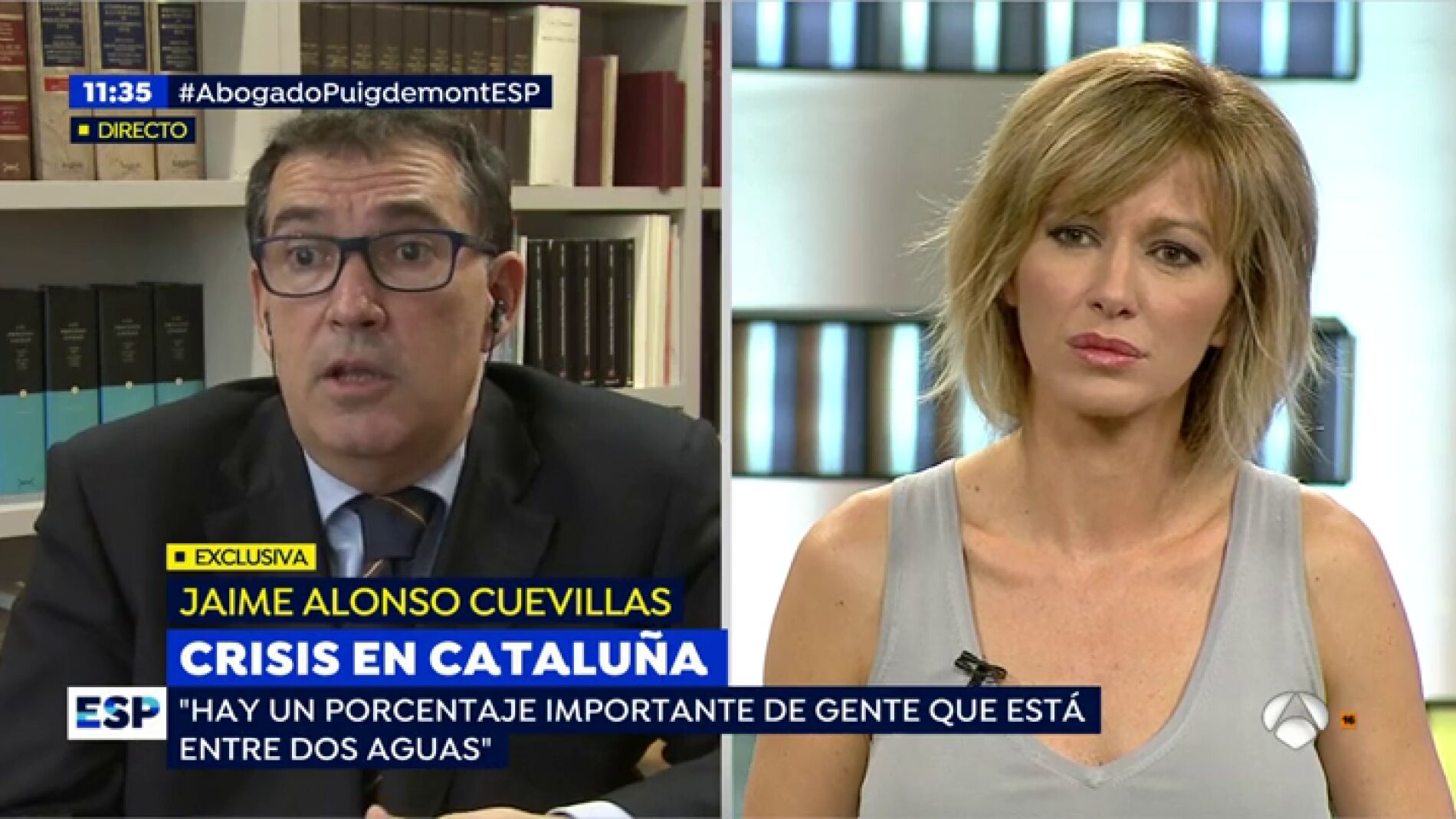Susanna Griso le comenta a Jaume Alonso Cuevillas que "esto es un sinsentido, hemos pasado del España nos roba a España nos mata" y le pregunta que en qué quedo "esa amenaza" que los independentistas "no acaban de concretar, ni quién hizo ni cómo se hizo" y el abogado le contesta que él no lo sabe y que jamás ha hablado de "masacre".
