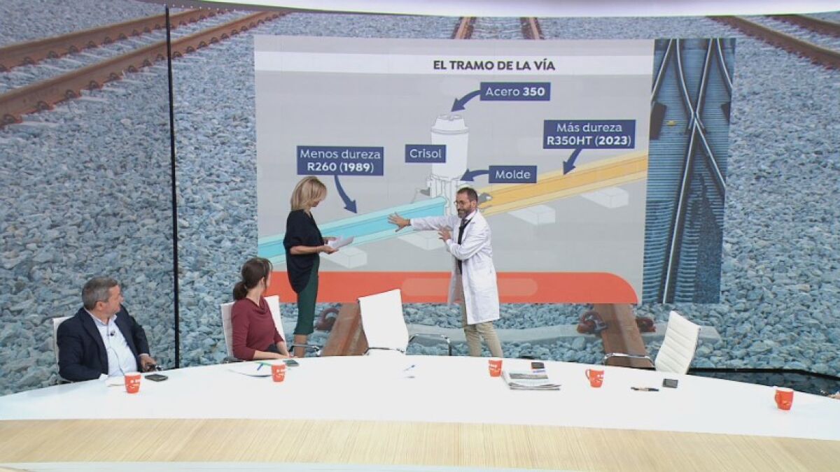 Para explicar bien qué es una coquera, Ricardo Díaz, catedrático de Ingeniería Química y Materiales, nos lo explica ante un esquema de cómo se hace la soldadura del tramo de 1989 y el de 2023. Ricardo matiza que la coquera es en realidad un poro y nos explica por qué se puede producir el poro dentro de la soldadura: "O bien porque hay humedad, que en el momento en que se hizo haga un clima con alta humedad. O segundo, porque haya grasa, no se haya limpiado bien el crisol, los dos railes". Ricardo Diaz ha explicado en el plató de Espejo Público que cuando meten el metal fundido a esa temperatura descompone lo que engancha y produce gas y "eso hay que limpiarlo muy bien". Pero este catedrático apunta a otras posibilidades para que se produjera una coquera: "También puede ser que el crisol no estuviese bien cerrado, que entrara aire o que no hubieran puesto suficiente temperatura en el crisol". De hecho la temperatura podría ser una de las claves: "Si los dos railes tampoco están a alta temperatura, primero no se produce la adherencia y en segundo lugar va a quedar gran cantidad de aire ocluido"
