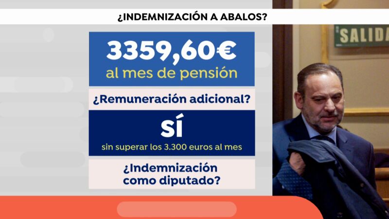La pensión de Ábalos una vez fuera del Congreso sería de 47.34,4 euros al año. Al mes va a percibir 3.359,60 euros. Lo que está ahora en el aire es la indemnización que recibirá como diputado dada su situación penal. Si se resolviera a favor del exministro y exdiputado esa indemnización no podría superar más de lo que percibe ahora por pensión. En principio la indemnización prevista era de unos 57.000 euros