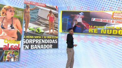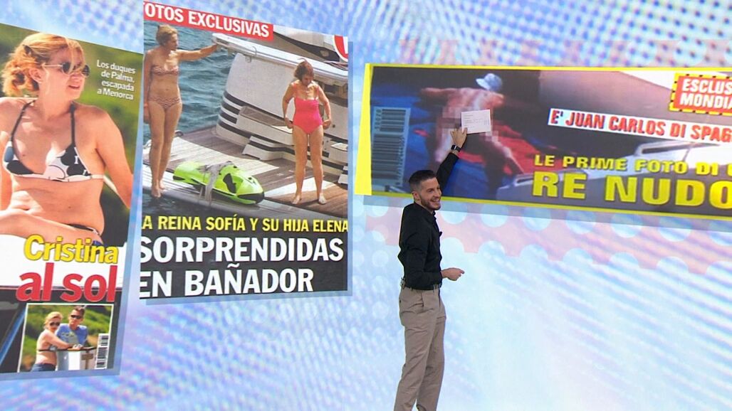 La foto más 'picante', y que causaba algunas risas en plató era una que publicó una revista italiana, con el rey emérito, que ha vuelto a ser noticia esta semana por su demanda a Miguel Ángel Revilla. El periodista bromeaba precisamente con que fuera el expresidente de Cantabria el facilitador de la instantánea en la que se ve Juan Carlos I sin ninguna prenda cubriendo su cuerpo al sol.