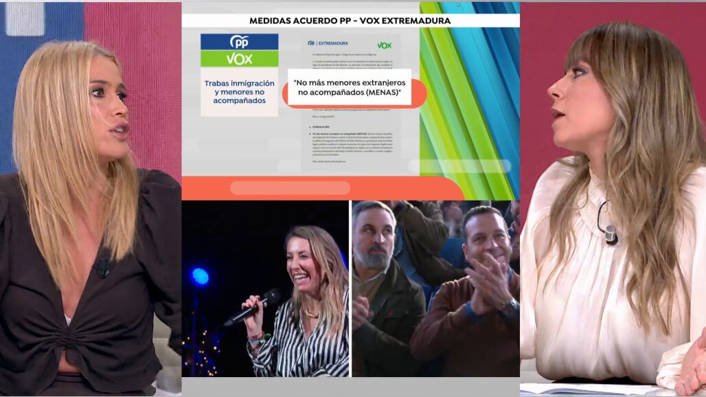 Al tratar la protección integral de los menores, la abogada Paula Fraga ha detallado que la gustaría ver "a la izquierda hablar de la protección integral de los menores cuando llevamos cinco años con la aplicación de una ley trans que se está derogando". Ante esta declaración, Afra Blanco le ha exigido que deje de "hacer demagogia". Posteriormente, le ha preguntado a Fraga si le parece bien lo que han firmado en Extremadura.