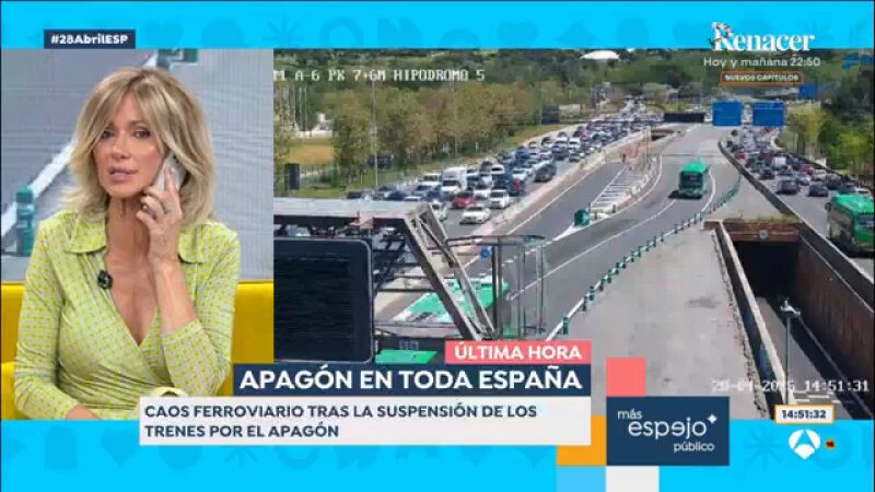 El apagón eléctrico generalizado en España provocaba que la periodista hablara con su hija en mitad de la emisión de 'Espejo Público'. La joven trataba de regresar a su domicilio después de que en la universidad donde estudia les pidieran que desalojaran el centro.