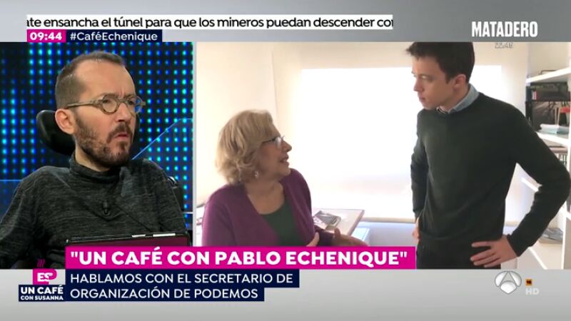 El secretario de organización de Podemos, Pablo Echenique, pone en valor el liderazgo de su formación y señala que la alianza entre Manuela Carmena e Íñigo Errejón ha dejado a la dirección "en 'shock'".