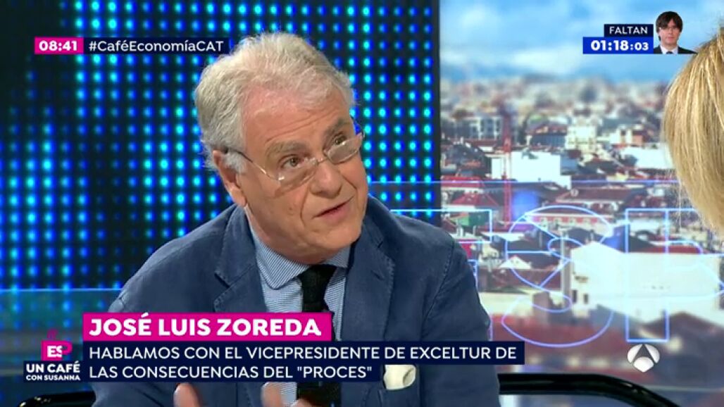 Susanna Griso se toma con café con el vicepresidente de Exceltur para hablar de las consecuencias del 'procés'. Si se prolonga el conflicto catalán, España perdería en 2018 trece mil millones de euros. El turismo es la principal fuente de riqueza y el lobby que aglutina a las 30 mayores empresas. José Luis Zoreda confiesa que "comparando este año con el año pasado ya hay un 20% menos de reservas".