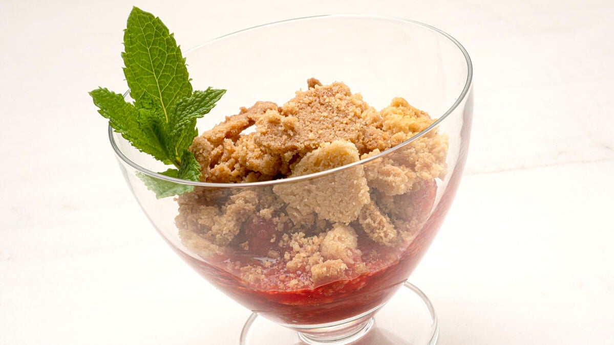 Con el color de la pasión, la receta de crumble con frutos rojos se postula como una de las recetas de mayor éxito de Karlos Arguiñano.