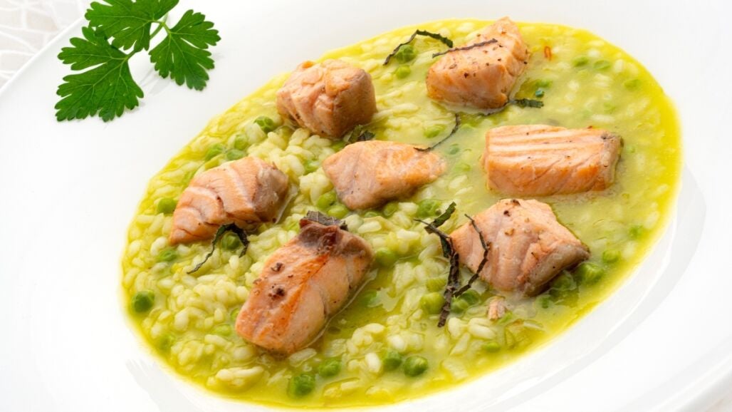 Salmón con arroz caldoso de guisantes, de Arguiñano: "Esta receta es una maravilla porque tiene de todo"