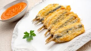Anchoas rebozadas con salsa de piquillos, de Karlos Arguiñano