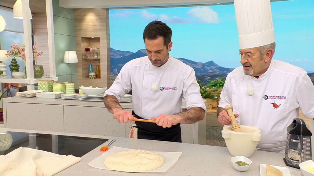 "Eres como una máquina alemana", afirma Arguiñano después de ver a su hijo mostrar este truco de cocina tan práctico a la hora de elaborar el pan casero de ajo y queso con orégano. ¡No te lo pierdas en el vídeo!