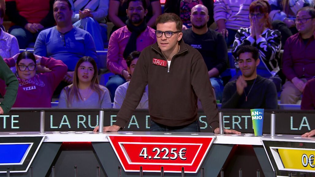 Tras sortear la ‘quiebra’ por milímetros y no saber la respuesta durante varias tiradas, sumado a la presión de tener en su marcador más de 4.000€ y a un público que le animaba a completarlo, Javi ha conseguido mantener la calma y resolver el panel.