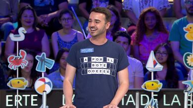 Felipe es el concursante del atril azul que ha venido a La ruleta de la suerte, pero, ha traído una prenda fuera de lo común. Se trata de una camiseta dedicada al programa en la que pone: “A por el bote ooeeee”.